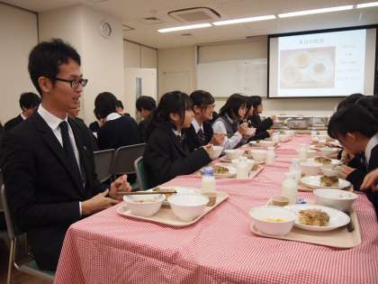 お好み焼きは厚さ3センチはあろうかという一品です。栄養士さん曰く「25分間、オーブンでじっくり焼き上げました」とのこと。