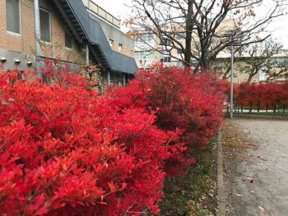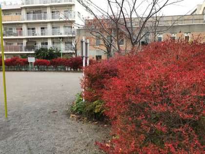 例年に比べ、紅葉が遅くなっている影響からか、学校の隣にある公園では紅葉がまさに今、見頃を迎えています。