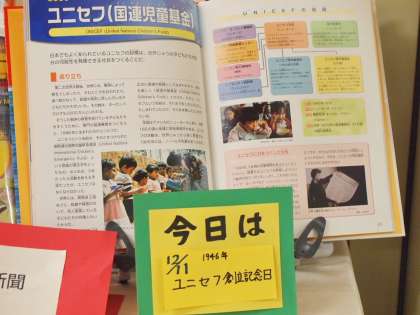 恒例の日替わり‘今日は何の日?’メニューから、特集コーナーまで、フナキボの図書室入り口付近はいつも充実しています。
