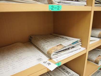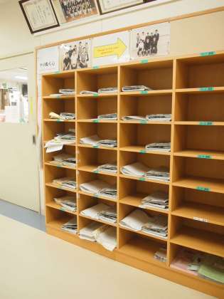 フナキボの職員室前にある各クラス配布棚には、毎日3社の新聞が入っています。もちろん、きれいに折り畳まれて。新聞を学校へ配達しているのは販売店の方ですが、ポストから校内に持ちこみ、重ねて配布棚に入れていただいているのは学校の主事さんです。雨の日は、包装されているビニール袋を一部ずつ剥がす作業が加わります。頭の下がる思いです。フナキボ生のみなさん、新聞を手にする時、このことを思い出してくださいね。