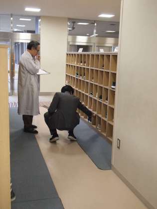 8時25分を過ぎると、下駄箱を見て、まだ登校していない生徒を確認します。電話連絡がない生徒の上履きが残っている時には、家庭に連絡するなど、学年全体でフナキボ生をサポートします。
