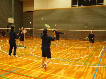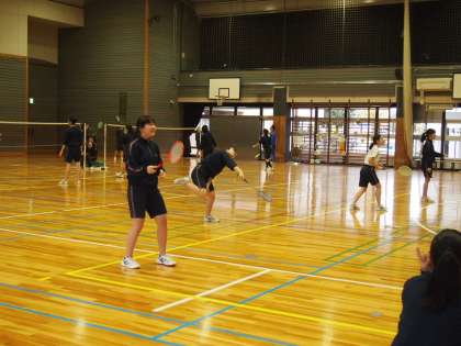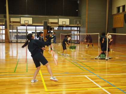 今体育では、3年生がパドミントンに挑戦しています。シャトルの飛び方は独特なカーブを描くので慣れないとうまく打ち合いになりませんが、とにかく楽しく学ぶことには長けている8期生。たとえうまくいかなくても…笑顔です。