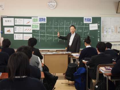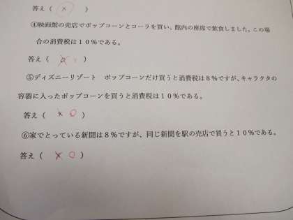 様々な税の仕組みを学んだあと、先日改定された消費税に関するクイズ問題をやりました。「見学している先生もぜひ」ということでいざ、挑戦。いや〜わかっているつもりでしたが、3つも間違えてしまいました!そういえば9月の新聞各紙で盛んに特集が連載されていましたね。もっとしっかり読みたいと思います。