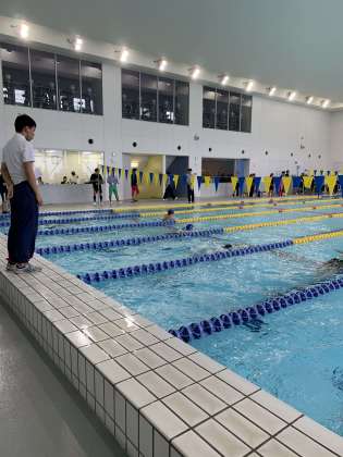 エントリー時に申告したタイムでコースが分かれるため、男子も女子も中学生も高校生も一緒に泳ぐことになります。