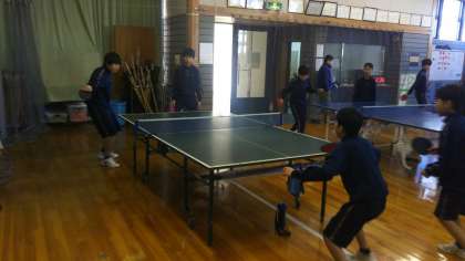 卓球部の練習の様子です。明日の世田谷区冬季大会に向け、ダブルスやラリーの練習に取り組んでいます。2020年も頑張って行きますのでよろしくお願いいたします。(田村)