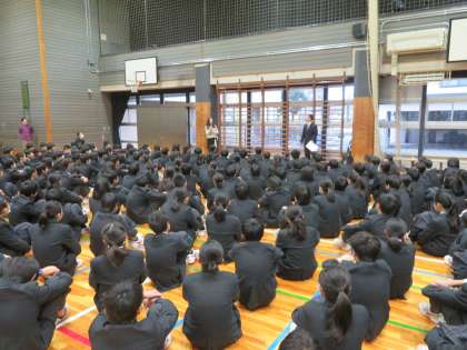 学年主任の山本先生の方から、3学期に向けて学年として頑張っていこうという前向きなお話、そして、学年の2名の先生からおめでたいお話を頂きました。