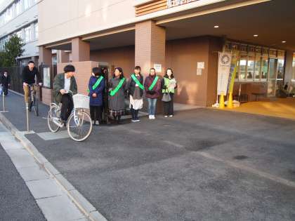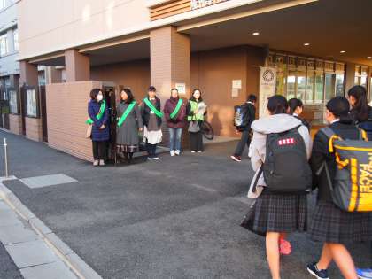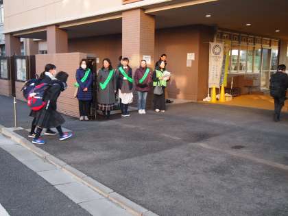 新年初のあいさつ運動に参加していただいているのは、2年1組の保護者の方です。朝からさわやかにフナキボ生に声をかけていただいています。そして、あいさつキャンペーンが行われている学舎の小学校から自転車で戻ってきた教員にも、労いのお言葉をかけていただきました。ありがとうございました。