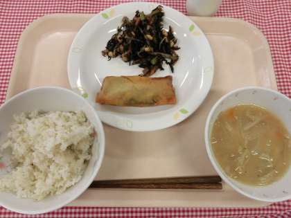 和食の配膳は、ごはんが左、汁物が右です。今日は配膳を意識して給食準備をしてみてください。