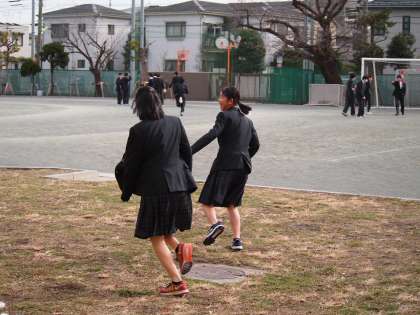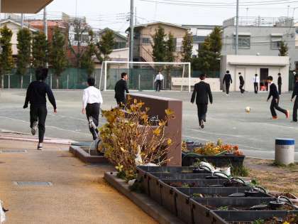 給食終了のチャイムが鳴り終わり、30秒もしないうちに元気なフナキボ生たちが昇降口から校庭に向かって走っていきます。昼休みの校庭での遊びを楽しみにしている生徒たちです。