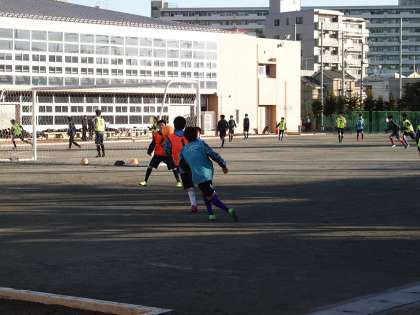 校庭では、今朝もサッカー部が朝の練習を7時半から開始。真冬の朝日を浴びながら元気に活動しています。