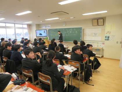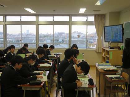 理科の授業では、天気図を見て分かることを一人ひとり真剣に考えています。