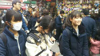 体験を終えて、それぞれの班が見学地に向かいます。気をつけて移動しましょう。(田村)