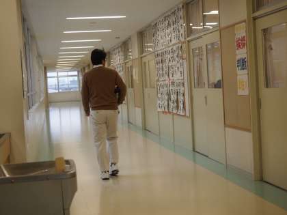 8時30分の1年生の廊下では、学年主任がハンドクリーナーで掃除をしています。延期になった横浜校外学習の掲示物。3月には行けるといいですね。