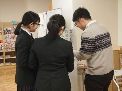 昨日の展示の準備は、教員と生徒が一緒になっておこないました。展示発表委員会が中心となって作品を並べる姿を見ると、本当にフナキボ生のひたむきさが伝わってきます。ぜひ学校へお越しいただき、力作揃いの作品をご覧ください。