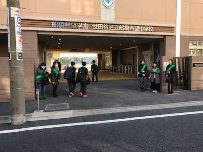 本日6日から3日間、2年4組保護者様によるあいさつ運動が行われています。寒い中、朝早くからご協力ありがとうございます。(副校長)