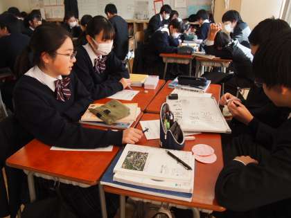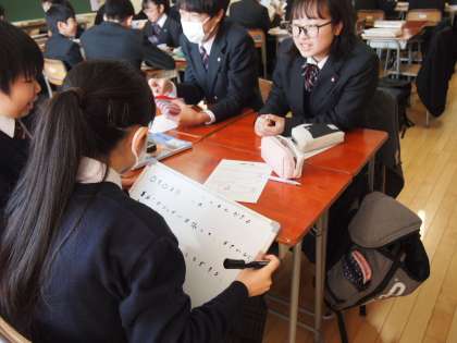 尊皇攘夷運動について学んでいます。「開国によって、庶民の生活が苦しくなった。この怒りをどこに、どのような形で向けたらよいか。庶民の立場で考えてみよう」という課題に取り組んでいます。さて、ホワイトボードにまとめられた班の意見はいかに?