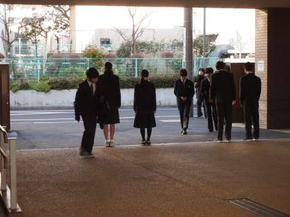校門では、生徒会役員があいさつ運動をしています。「頑張っているなあ〜」「自分もあいさつを大事にしよう」と思うフナキボ生がひとりでも増えることを願って、寒い中立ち続けています。ガンバレ!