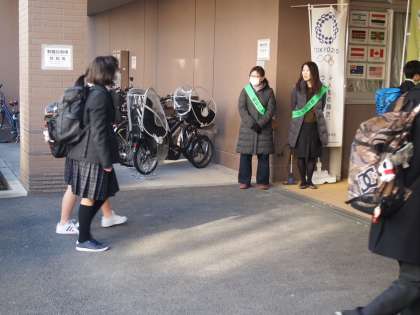 2年5組の保護者の方によるあいさつ運動は、今日が最終日です。昼間は、あたたかな日々が続いていますが、朝の寒さはさすがに2月の気温です。早朝からありがとうございます。