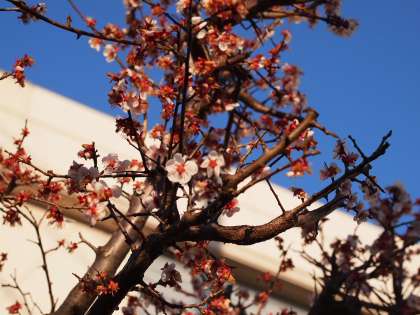 今朝フナキボの校庭に出ると、またまだ冬の寒さ。しかし、フェンスの近くには桃の節句をお祝いするように、花が咲いています。本来ならば、今日の給食は、ちらし寿司とひなゼリー(桃色、白、緑の3色で色分け)でお祝いする予定でしたが、残念!幸田栄養士と調理員さんたちも張り切っていたのですが。でも、その分各ご家庭でお祝いをしてください。3月の献立表によると「桃には魔よけ効果、そしてひな人形は娘の厄を引き受ける役目」があるのだそうです。