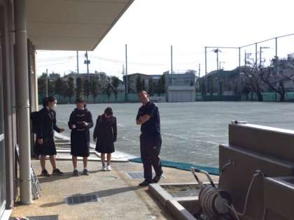 先生方は生徒たちとの再会が嬉しい様子で、ついつい会話が弾んでしまいます。(大居)