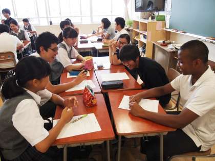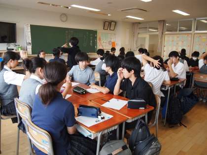 ここからは2年生の時の授業の様子です。タイトルは「デベートに挑戦」でした。1学期ですが、やはり1年生が入学してきて先輩となったためか、顔つきが2年生らしくなっていますね。それにしても、やっぱり話合いでも、授業でも楽しそうな笑顔が多いです、8期生は。