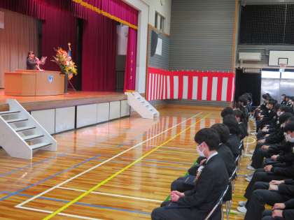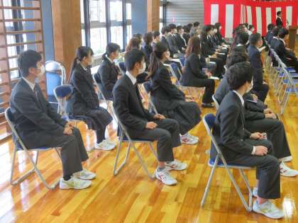 在校生による、送ることばの様子です。本年度は在校生は一部の参加になりますが、心をこめた卒業生へのことばでした。(田村)