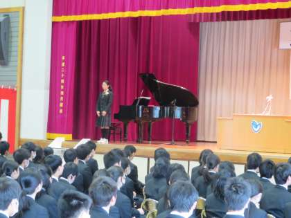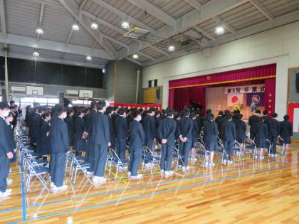 例年とは違う形になりましたが、卒業生、保護者、教職員にとって「心」に響く校歌になりました。(田村)