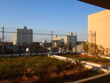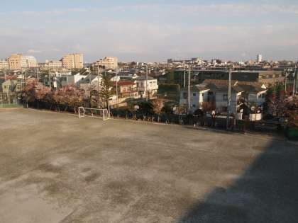 日が傾きかけた夕方、校舎の4階に行ってみました。本来であれば、新学期が始まり、部活動が本格的に始まる4月下旬の夕方5時半すぎ頃、こんな眺めが見られます。校庭側だけでなく、北側の希望丘団地方面や東側の都心方面の眺めもなかなかのもの。特に、新しくフナキボに入学する11期生に早く見せてあげたい、と思いながらカメラのシャッターを押しました。
