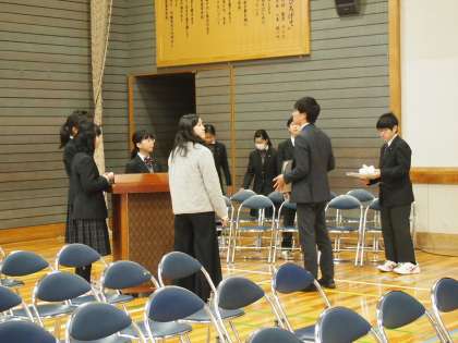 まずは、入学式後に行われる対面式。昨年度は4月10日に行われました。新しくフナキボ生の仲間入りを歓迎する2、3年生の心のこもったイベントです。もちろん、生徒会役員が自分たちで企画、準備をしています。