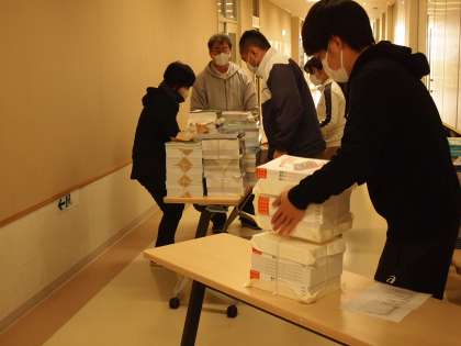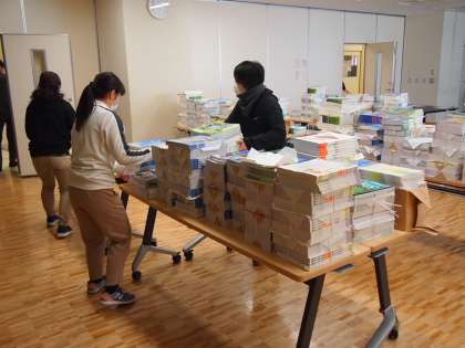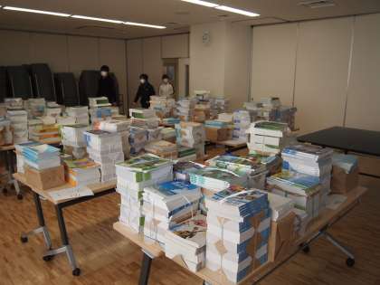 1年生は明日、教科書配布になります。今日はその準備のため準備をしています。何といっても259名の新入生の教科書ですから、その冊数は膨大な数になります。
