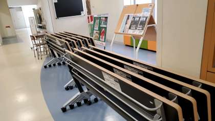 明日は新2・3年生の生徒が教科書を受け取りに来る日ですね。今、先生たちで明日へ向けた準備を進めています。