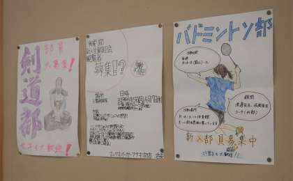 4月の今頃、1年生の廊下にたくさんのポスターが掲示されます。部員獲得のため、各部活の意気込みが十二分に感じられるものばかりです。