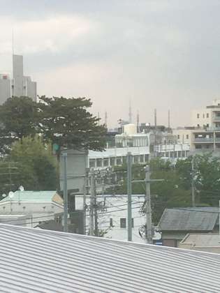 曇り空の中、見えないかぁと思いながら、4階に上がると、見えました!スカイツリー!通常なら、廊下にみんなの声が響き渡り、笑顔があふれているはず。早く、この風景を一緒に眺めて、たわいもない会話をしたいですね。
