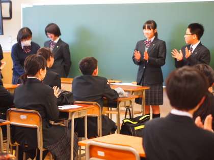 あれっ?生徒が先生役?いえいえ、これは放課後の委員会の様子です。ちょうど4月の今頃に第一回委員会が開かれます。フナキボでは、上級生が委員会をリードします。どの委員会に行っても、とにかくみんな楽しそう!これがフナキボです。
