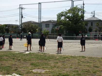 臨時休校が長いと、つい曜日の感覚が鈍ってきます。そう、そんなフナキボ生のために始まった日曜日限定のarchive版です。このゴールデンウィークの期間は部活動の春の大会の真っ最中です。この画像はその合間の日に校庭で練習をするテニス部です。この日は3月に卒業した先輩が来ていました。