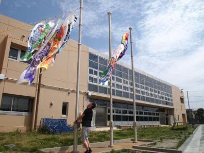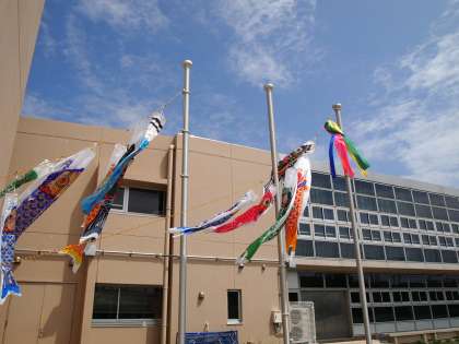 今日はこどもの日。端午の節句に鯉のぼりをあげる風習は江戸時代に庶民から広まりました。古代中国の五行説から、邪気を払う意味で吹き流しを飾る風習が広まり、のちに江戸の商人の間で登龍門伝説にあやかって和紙でできた鯉のぼりを飾る風習に発展したというのが有力な説です。みんなの我慢と努力で感染症の流行が早く収束できるよう、この鯉のぼりにも願いを込めましょう。