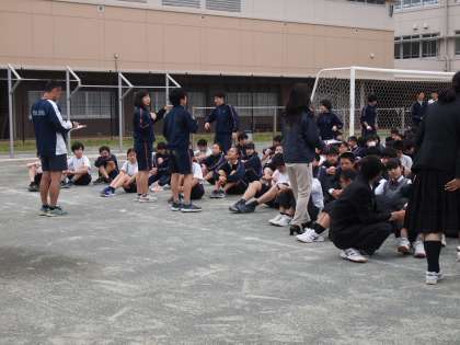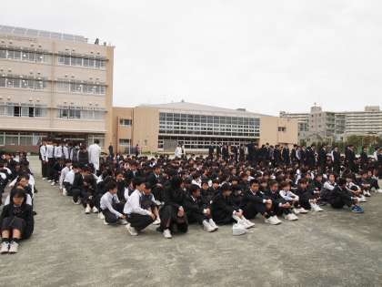 もう日曜日が来てしまいました!早いですね。だからこそ生活にメリハリをつけて1週間のリズムをつくりましょう。この学校生活archive版を見たら「そうか、今日は日曜日。明日からまた1週間がはじまるんだ」と気持ちを新たにしてください。この画像は初めての避難訓練の場面です。この日は「訓練、訓練」の放送が入ってから全員が校庭に整列完了まで3分40秒でした。いや、700人を超える生徒がいることを考えると、しかも1年生が初めて、ということを思うと立派なタイムです。