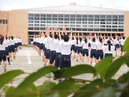 フナキボ運動会は得点につながらない、体操や行進こそ気合を入れ一生懸命にやることが先輩から代々引き継がれている大切なポイントです。この時の8期生も気合を入れていました。