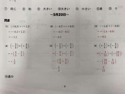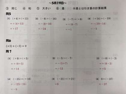 先日配布した1年生の数学の課題で、印刷が薄く解答の符号が見えにくいところがあったため写真をのせます。すみませんでした。