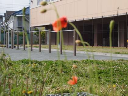 これもちょうど1ヶ月前に撮影したものですが…鉄棒が見えません!そうです、植物も動物も人間も、みんな月日がたつと成長します。ただし、人間は体だけでなく心も成長する要素をもっています。自宅でどのくらい成長しているか。その姿に会える日をフナキボの先生たちは楽しみにしています。