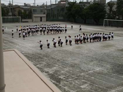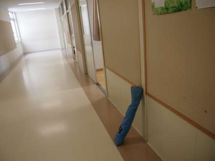 昨年度、校庭で運動会練習している時期に教室の授業風景を撮影しに行った時、廊下に(?)を発見したのがこの画像です。とにかく大縄の回数を伸ばすことに全力をかけたい上級生の気持ちが素直にあらわれていると思った瞬間でした。