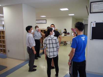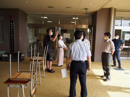 天気予報が明日の夕方から雨模様に変わったのを受け、入学式当日の生徒や保護者の動きをみんなで確認しています。受付をどこにするか、どうやって並ぶかなど「密」を可能な限り避ける対策を考えています。
