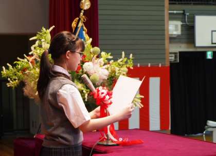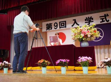 入学式を3回に分けて行うため、本人が出られない式のために、新入生の誓いのことばを録画しています。気持ちが入った誓いのことばに思わずカメラを持つ手を止めて聞き入ってしまいました。
