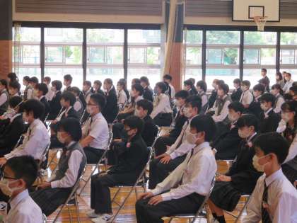 まずは、船橋希望中学校に入学した一年生の皆さん、入学おめでとうございます。いよいよ今日から正式にフナキボ生です。