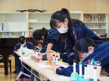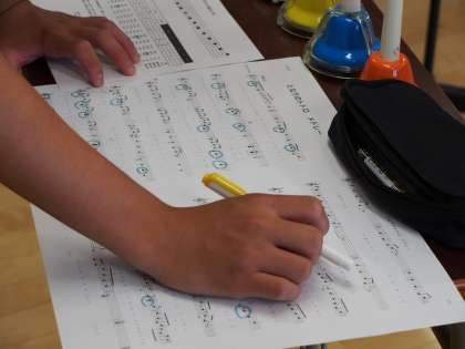 楽譜に色をつけて、ベルを鳴らすところを記入していきます。眼差しは本当に真剣そのもの。集中力もすごい。お昼に帰宅してからはぐったりしているかな〜?