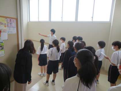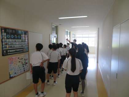 1年生の校内巡りの様子です。特別教室や体育館、職員室なども回っています。本格的に授業が始まるので、今のうちに校舎に何があるか少しずつ覚えていきましょう。(田村)