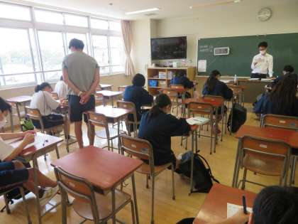 2年生の授業の様子です。分散登校も2週目になりましたが、真剣に取り組んでいます。1年生も今日から学校生活が少しずつ始まるので、この調子でフナキボの先輩としての姿をしっかり学校生活で示してください。(田村)
