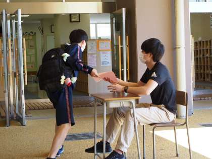 今朝のフナキボ校庭は、真夏の青空に校舎が映えています。そして「新しい生活様式」としてすっかり定着した検温と体調チェック。チャイムぎりぎりに着た9期生が「わ〜どうしよう。間に合わない〜!」と大声をあげて教室へ駆け込む姿。これもようやく異常な緊張感から少しずつ開放されている証拠、とあたたかく見守ってあげたいですね。