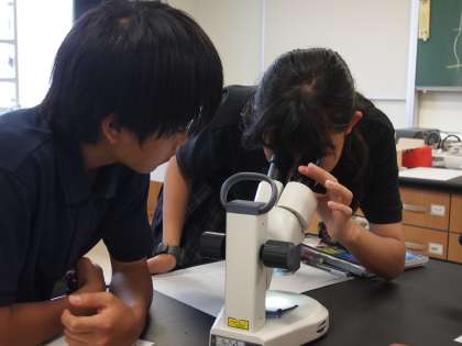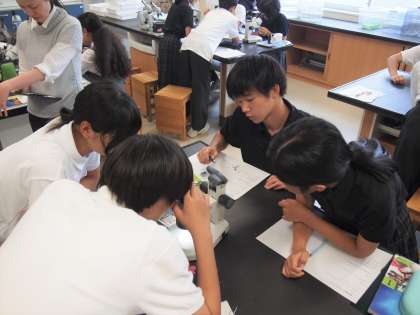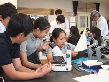 もちろん10期生も集中力では負けていません。顕微鏡で花の子房を観察する真剣さ、そして授業を楽しんでいることが笑顔から伝わってきます。