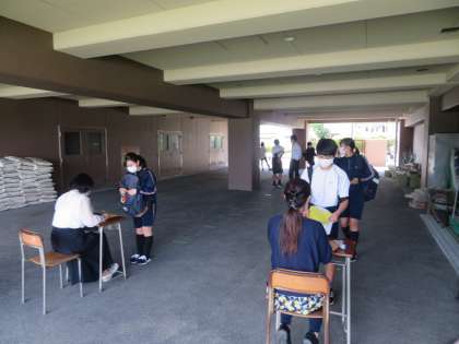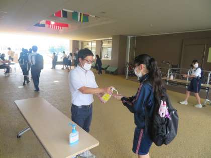 本日より、1・2・3年生が同時に分散登校します。各学年、分散登校も3週目に入ったので、手指消毒や健康カードチェックなどスムーズに行えています。